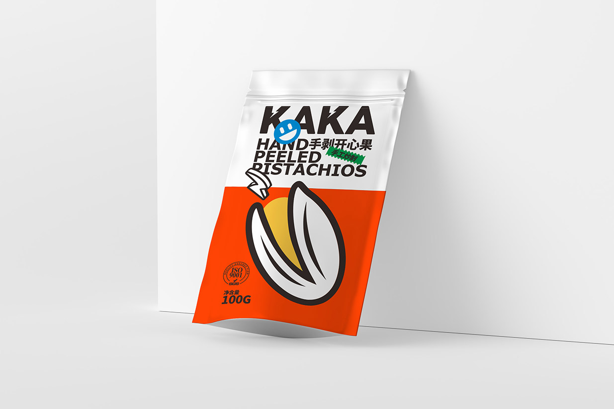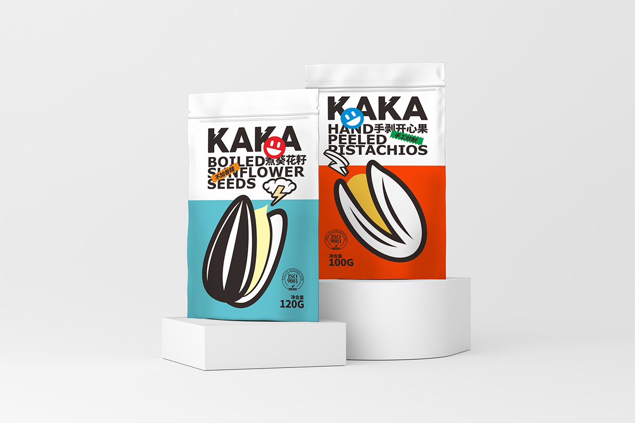 Item Kaka堅果包裝設計 content:包裝設計 Introduction:在Kaka堅果包裝設計中,我們運用了波普風格的典型元素,如幾何圖形、夸張的色彩和簡潔的線條,使包裝呈現出年輕、時尚的氣息。黑色英文品名結合表情貼紙,增加包裝的互動性和趣味性傳遞出Kaka品牌年輕、活力、高品質的形象特點。