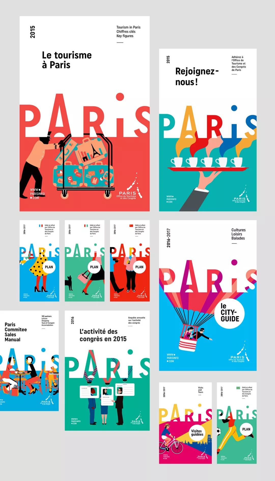 巴黎旅游局免費(fèi)提供給游客的地圖畫冊設(shè)計(jì)。 提供10種語言的版本。 塞弗林·米勒(SéverinMillet)創(chuàng)造了一個個生動活潑的人物插圖,并且只有腿可見:很好地表達(dá)了漫步巴黎的主題!