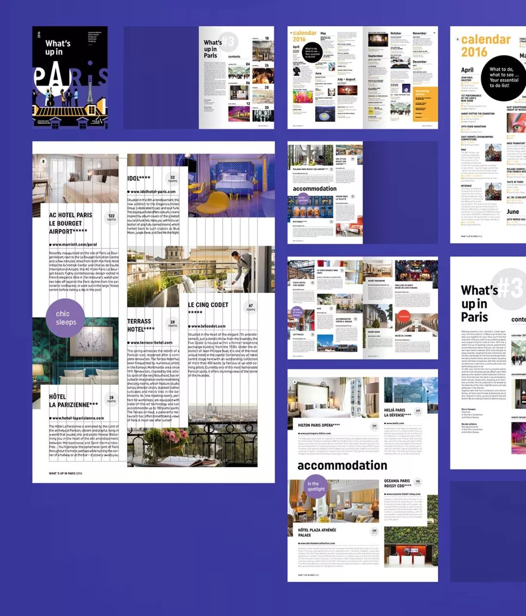 在巴黎的最新動態(tài)潮流雜志上,通過32頁介紹了巴黎酒店,活動場所,餐廳和購物方面的最新開業(yè)和裝修信息。 畫冊封面設(shè)計(jì)成了黑色,以展現(xiàn)巴黎是一個夜生活豐富的城市形象。