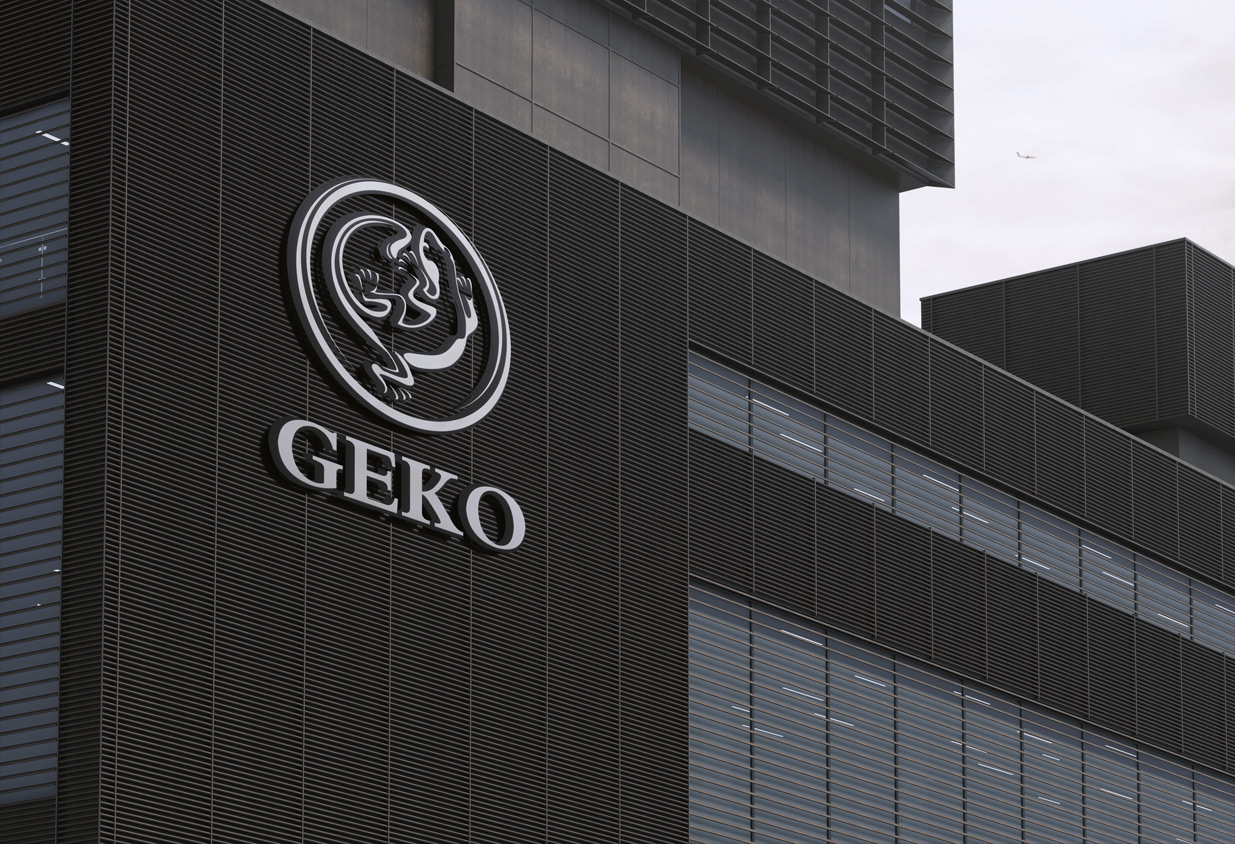 GEKO墻紙為大自然壁紙新品牌,GEKO意大利語,中文意思:壁虎,瑞士純進口的、經典的、精品墻紙時尚的,該品牌以壁虎的拉丁語"GEKO"突出產品特征,因此標識以壁虎為原型,進行藝術化提煉,蟠曲而臥、蓄勢待發,整體結構變化豐富,符號化強。