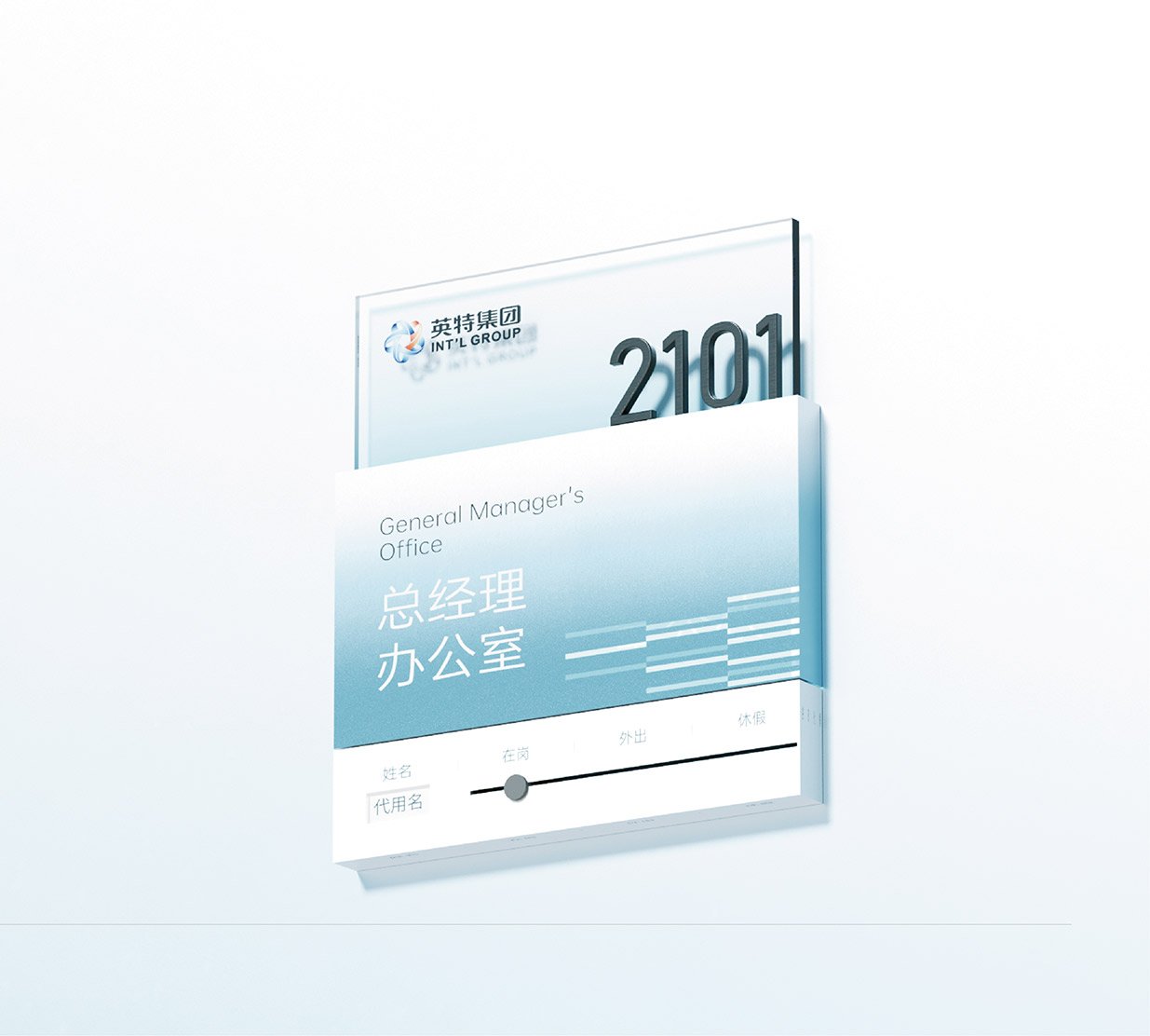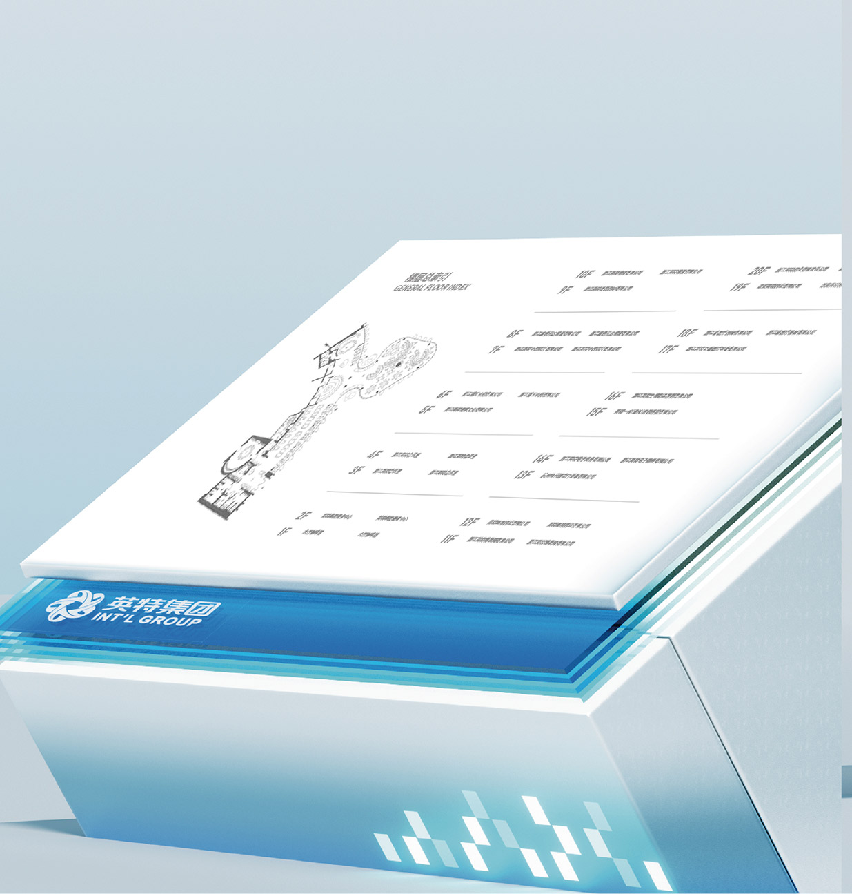 選擇藍色作為品牌主色調,藍色在色彩心理學中常常與智慧、科技、冷靜以及可靠性等特質緊密相連。在醫(yī)藥行業(yè),這些特質尤為重要,因為它們能夠傳遞出英特集團在醫(yī)藥科技研發(fā)、創(chuàng)新應用以及精準服務方面的專業(yè)形象。同時,縱向線段的設計元素巧妙地融入其中,這些線條象征著數據傳輸、信息流動以及科技發(fā)展的方向性。它們以簡潔而富有節(jié)奏感的排列方式,展現出英特集團在醫(yī)藥供應鏈管理、藥品信息追溯以及數字化醫(yī)療服務等方面所具備的高效、精準的科技實力,讓客戶直觀地感受到企業(yè)與前沿科技緊密相連的品牌形象。大量使用玻璃材質是本次品牌形象升級的另一大亮點。玻璃以其透明、光滑、質感高級的特性,完美地詮釋了現代感。