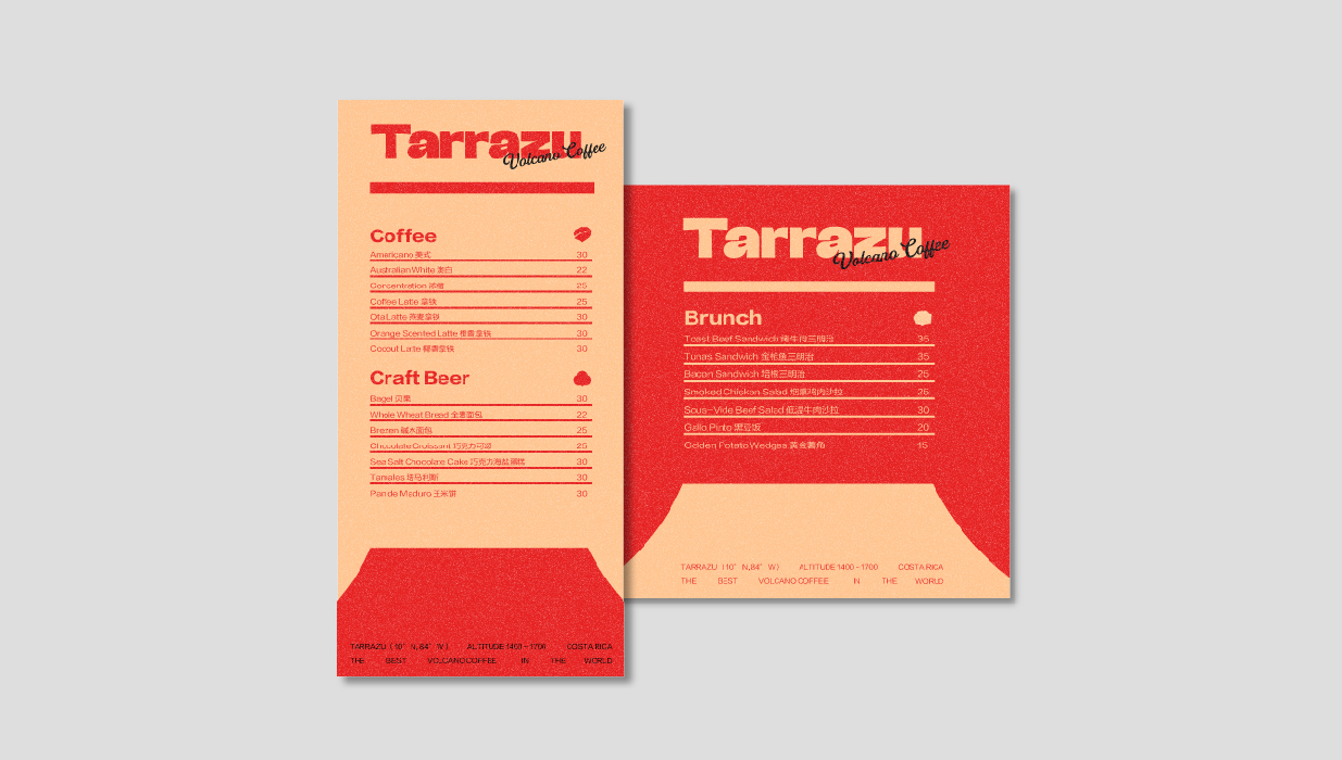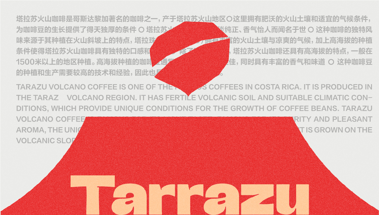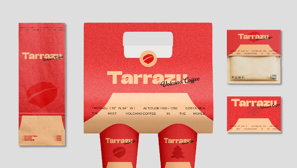 Tarrazu咖啡品牌形象設計以“來自Tarrazu的問候!”為主題,融合復古風格與哥斯達黎加的火山特色,以及鮮明的紅色元素,創造出一個獨特而引人入勝的視覺體驗。設計中,我們以哥斯達黎加的波阿斯火山為靈感,這座火山不僅是該國最活躍的火山之一,也是世界上最大的間歇性爆發的活火山。火山的形象象征著咖啡豆生長的肥沃土壤和獨特的地理環境,這與Tarrazu咖啡的高品質和獨特風味相呼應。