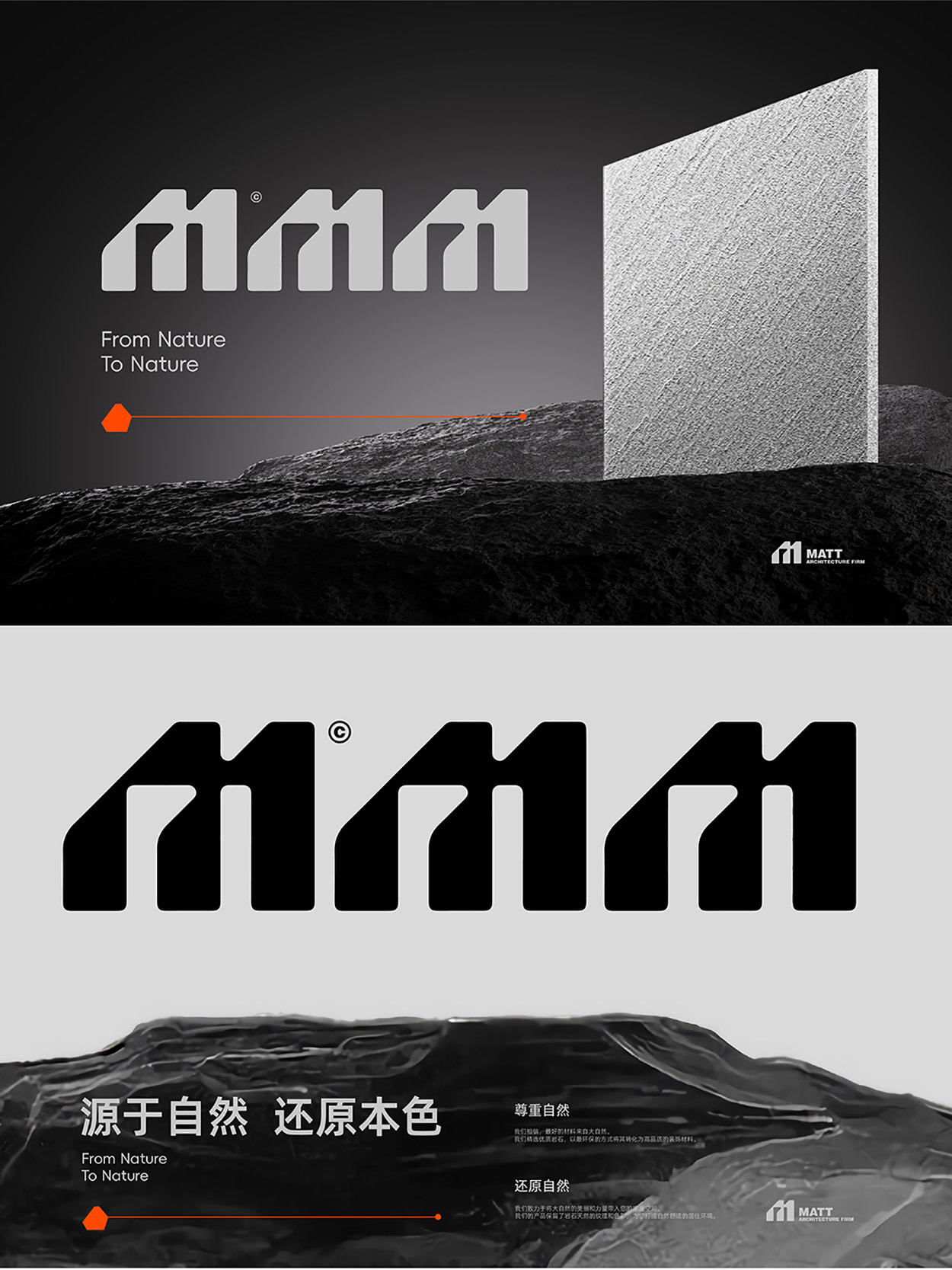 MATT強(qiáng)調(diào)材質(zhì)與空間的共生關(guān)系,通過巖板的自然質(zhì)感與科技工藝,傳遞“延續(xù)自然本質(zhì),賦能未來空間”的價(jià)值主張。品牌以黑色為基調(diào),象征巖層的深邃與永恒;以橙色為點(diǎn)綴,體現(xiàn)創(chuàng)新活力與對(duì)自然能量的致敬,傳遞沉穩(wěn)中突破、傳承中創(chuàng)新的品牌精神。