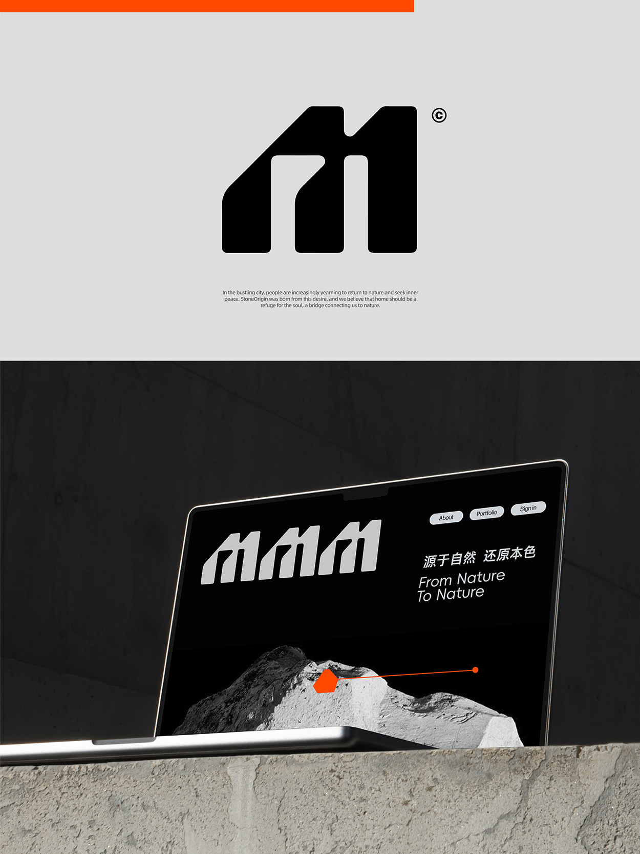 色彩系統(tǒng)主色:黑色,體現(xiàn)巖板的原始質(zhì)感、沉穩(wěn)與高端屬性; 輔助色:橙色,象征自然能量(如巖石中的礦物色澤)與品牌創(chuàng)新活力。